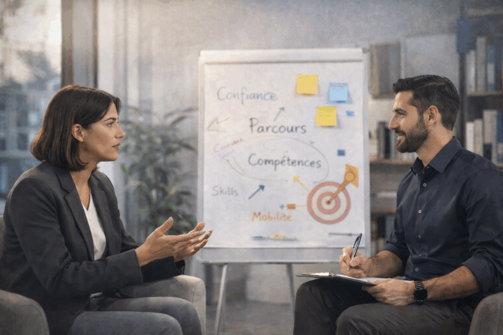 Nous revenons alors sur le parcours. Nous distinguons ce qui relève des compétences actuelles et ce qui relève de la valeur professionnelle construite dans la durée. Nous faisons apparaître des capacités transférables qui, bien souvent, avaient fini par devenir invisibles aux yeux de la personne elle-même.